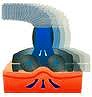 PRセルは、特殊なヘッドを使用して微妙な吸引とローラーの回転によって、皮膚及び皮下組織を手の平でマッサージをするように、セルライトの原因となる結合組織に働きかけ強力に揉みほぐしていきます。