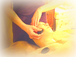 ホットストーンを使い温めながらマッサーシ。筋肉を心地よくゆるめ、ほぐしていきます。